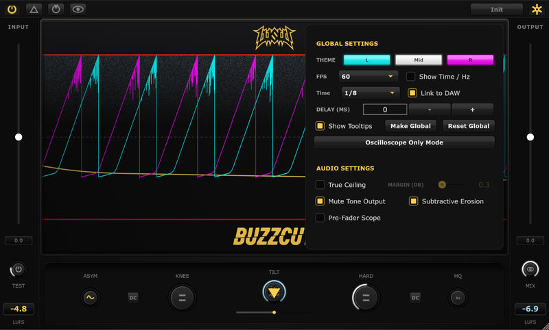 BuzzCut is the worlds first "Erosion Clipper". It modulates the clipping threshold with shaped noise. This replaces inharmonic foldback aliasing with superior "analog noise" (much like how dithering masks truncation).